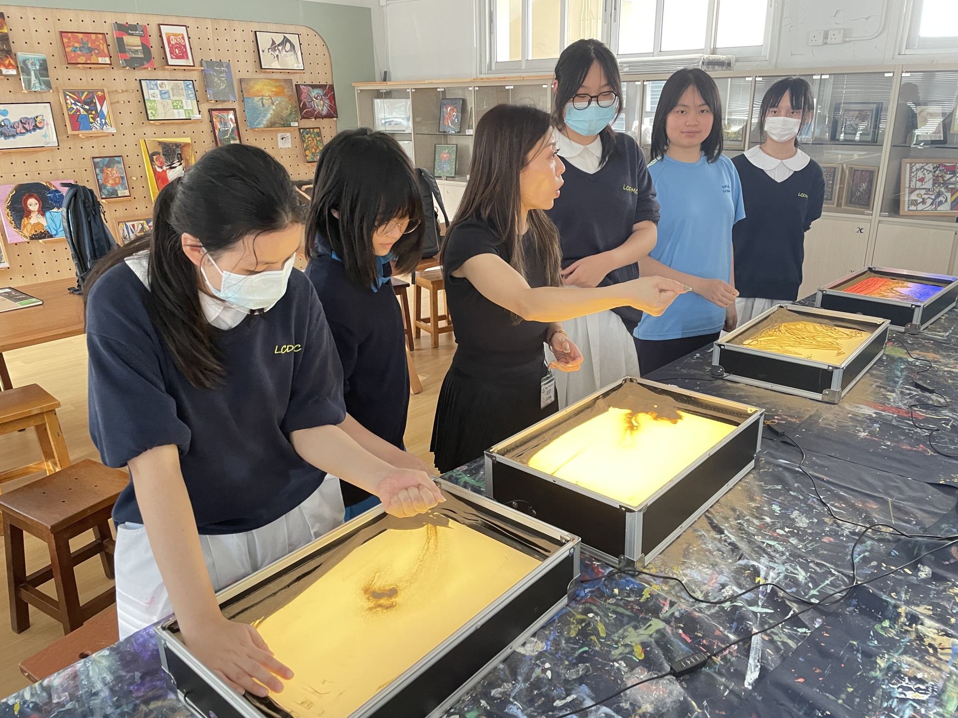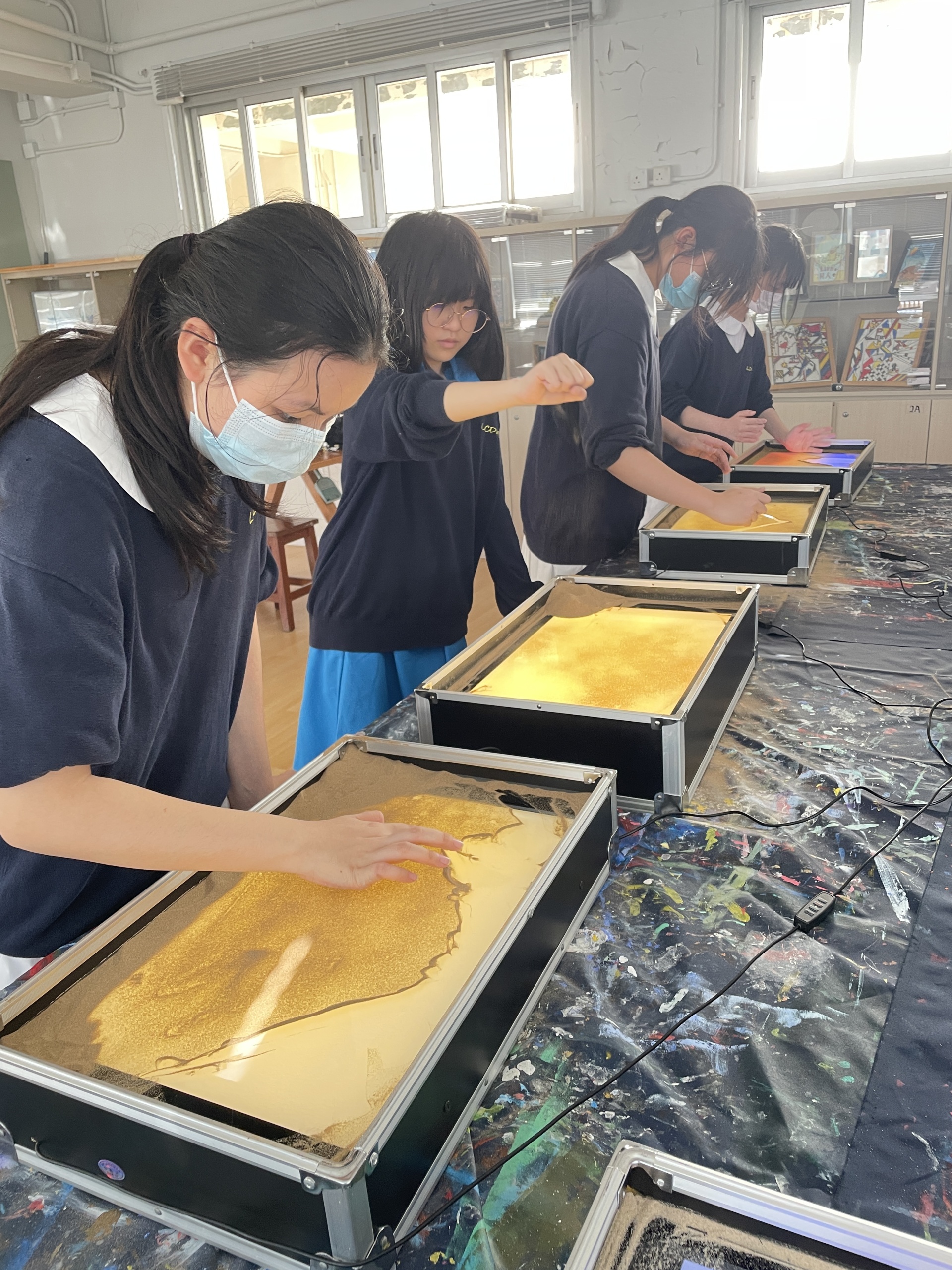 為55周年校慶晚會表演準備,讓 9 位中二及中五的學生及 1 位老師掌握以沙畫表演技巧,同時接觸獨特的藝術媒介,作出別出心裁的表演項目。
